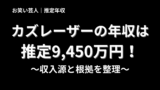くるまさんの現在の推定年収は、1億5,000万円〜2億円と考えられます。以下は、その主な収入源と詳細です。