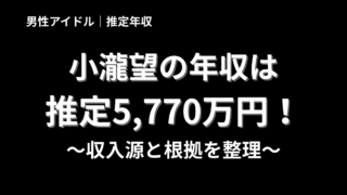 この記事では、小瀧望さんについて、経歴を中心に、今後ご紹介する昨年の推定年収、これまでの最高年収、今年の予想年収につながる基本情報を分かりやすく解説していきます。小瀧望さんは、WEST.のメンバーとして音楽活動を続けながら、ドラマ、映画、舞...